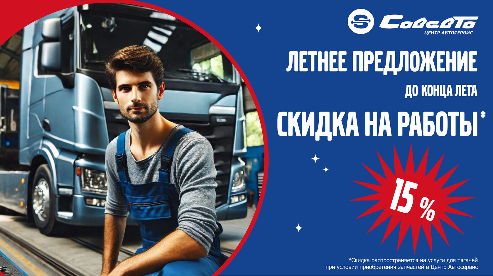 Мы дарим вам скидку 15% на работы по ремонту тягачей при условии приобретения запчастей в нашем сервисе.